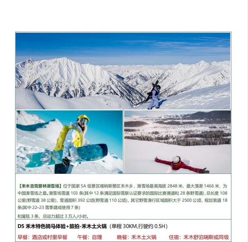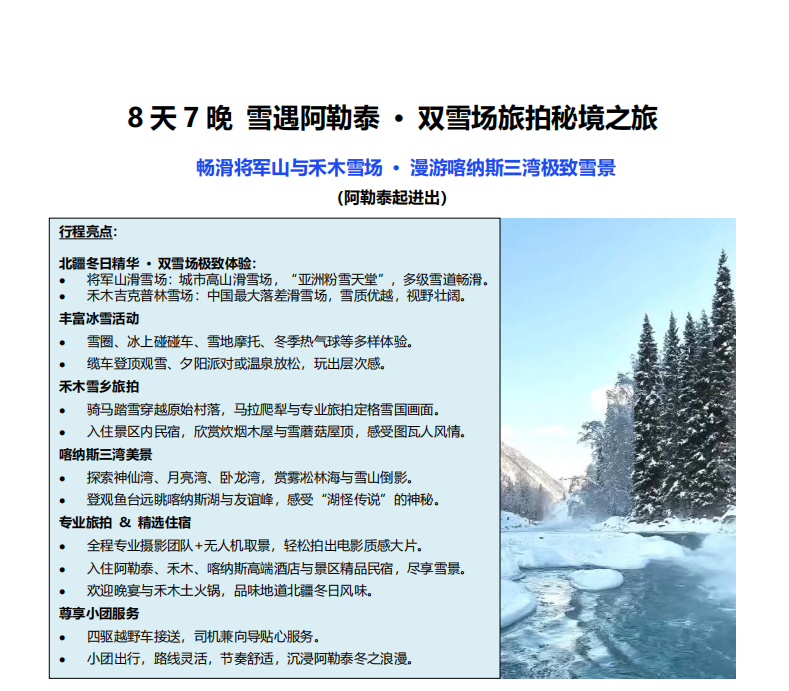 > 【中国】8 天 7 晚 雪遇阿勒泰 · 双雪场旅拍秘境之旅(北疆)