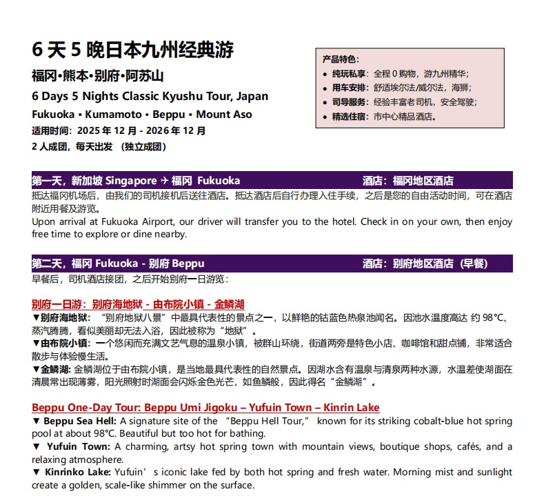 ‘’6天5夜 九州 经典游‘’