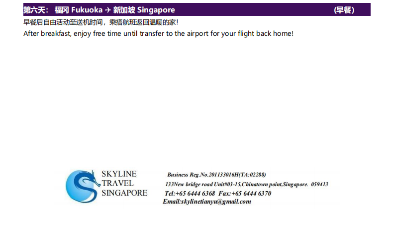 >>第六天:福冈 ✈ 新加坡