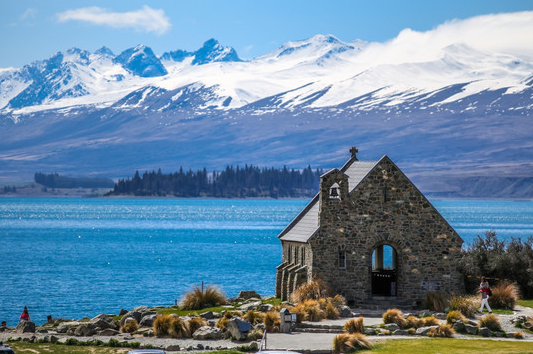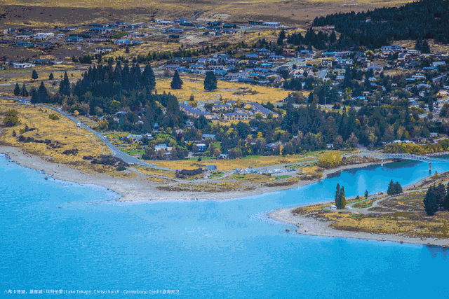 下午抵达美丽的星空小镇【蒂卡波】。蒂卡波这个名字来源于毛利语,它的意思是“星空下的草席”,这里是世界级星空保护区。小镇的北面是碧绿的湖水,湖对岸就是雄伟的南阿尔卑斯山。