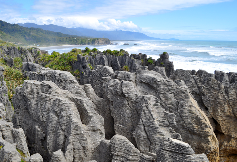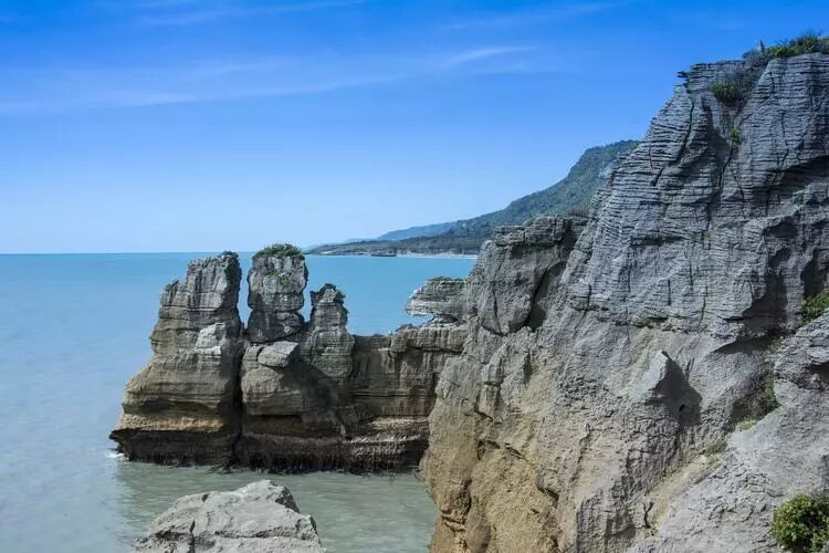 开启美妙的西海岸之旅。驱车沿 6 号公路北上抵达【千层薄饼岩】,蓝天白云无尽高远,海礁与沙滩相伴,奇异的岩石,如层层薄片摞在一起,经过塔斯曼海域千万年的海风和海水浸蚀形成了独特的千层岩景观。