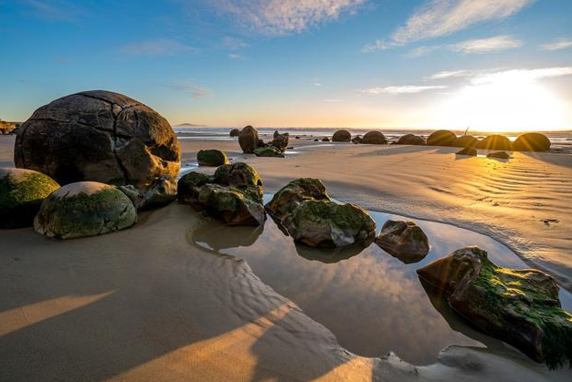 随后抵达观赏摩拉基海滩上散布着很多圆形巨石,也有一些大圆石分布在砂岩峭壁的周围,每块巨石都重达数吨,高达两米。