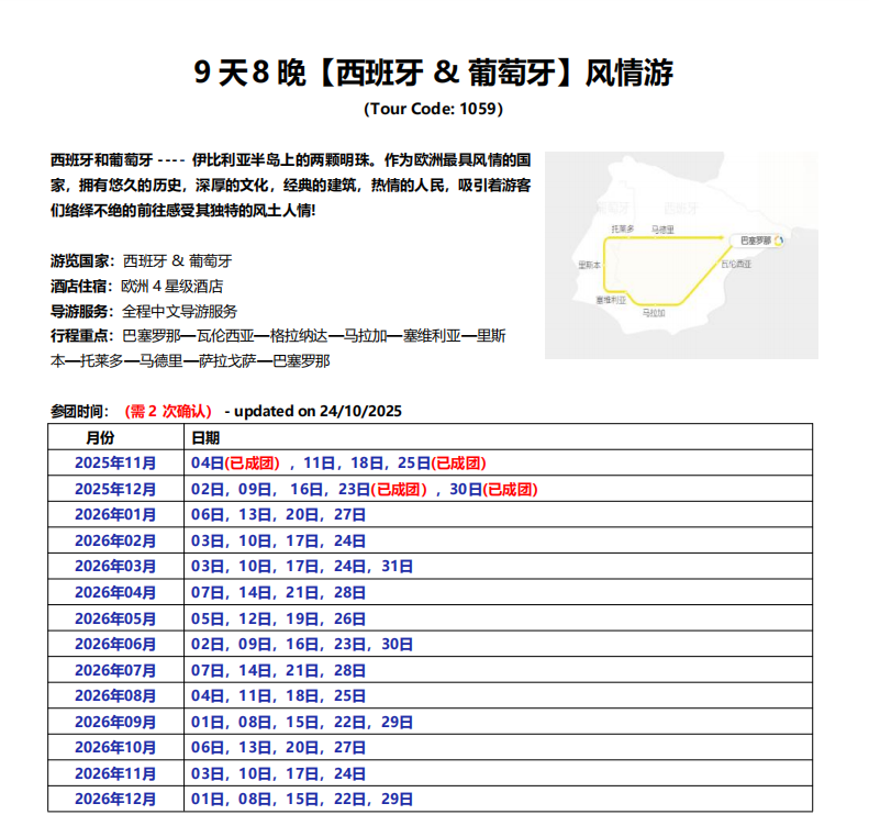 9 天8 晚【西班牙 & 葡萄牙】风情游