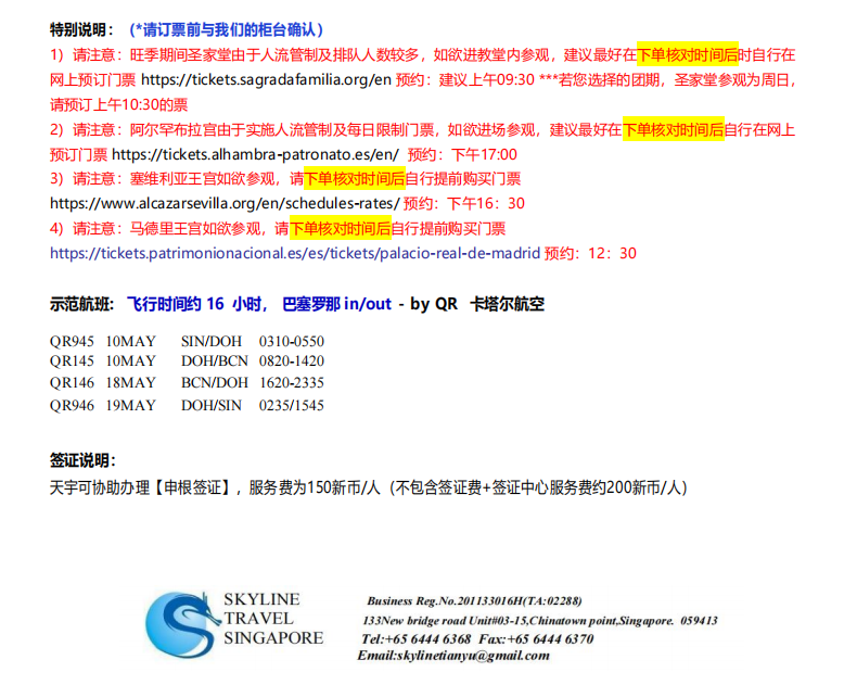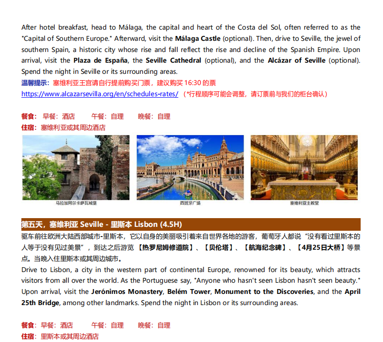 3)请注意:塞维利亚王宫如欲参观,请下单核对时间后自行提前购买门票https://www.alcazarsevilla.org/en/schedules-rates/ 预约:下午16:30