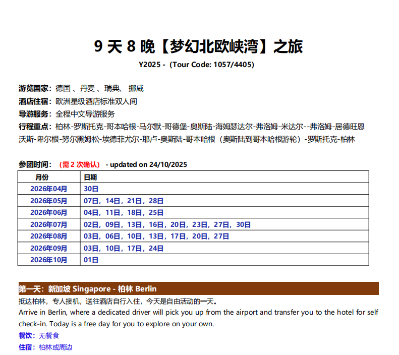 线路编号:1186 梦幻北欧峡湾之旅 德国 丹麦 瑞典 挪威