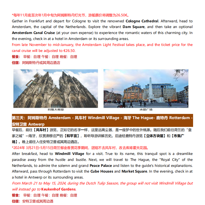 备注: 2019 年 3 月 21 日-5 月 19 日荷兰郁金香赏花季期间,