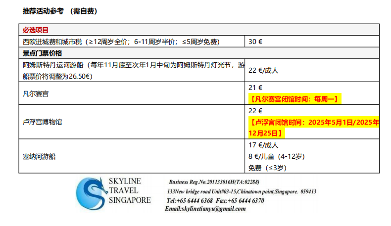 3.自费景点门票费用(可以根据自己的意愿选择是否参加。景点门票上团后导游统一收取)