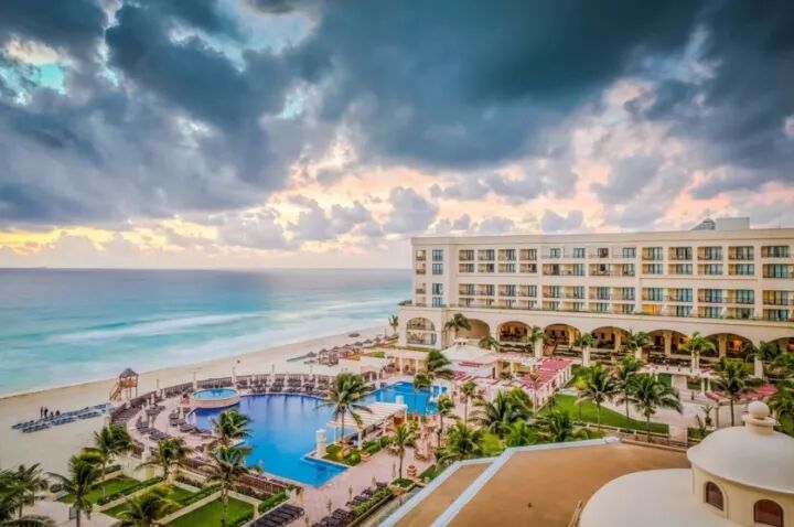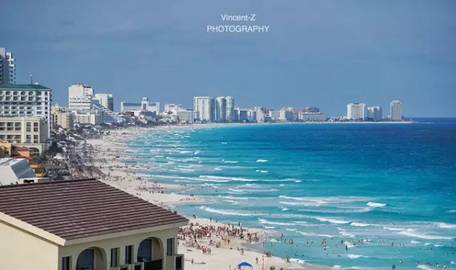 坎昆是旅游度假的胜地,狭长的沙滩上遍布着豪华的酒店,最低也是四星级。