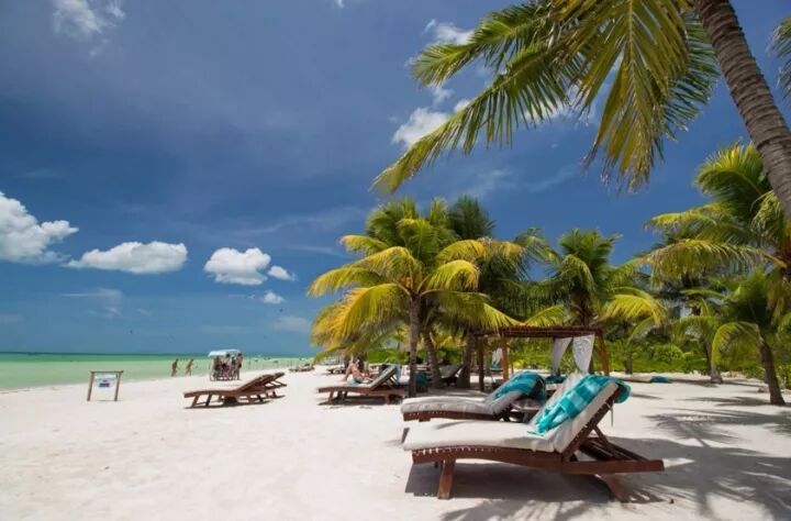 位于墨西哥最东海岸,而海滩位于一条狭长的岛上,岛宽不过400米左右,长居然达21公里, 面朝漂亮得一塌糊涂的加勒比海。