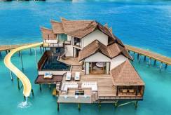 设有入水滑梯的优雅别墅,为您的住宿增添一抹肾上腺素!您可以在吊床上休息,看着小鲨鱼和礁鱼在波光粼粼的碧绿海水中游泳。与亲人一起沉浸在日落美景中,每天喝两杯来自超大酒吧的葡萄酒。
