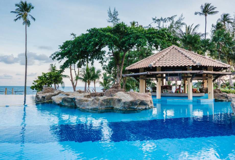 娜湾度假酒店设计清新典雅,布置典雅,每一间客房向外望,翠绿的热带园景或壮丽的南中海景尽收眼帘。