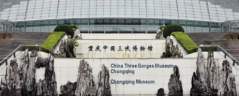 【重庆中国三峡博物馆】位于重庆人民大礼堂中轴线上,是一座集巴渝文化、三峡文化、抗战文化、移民文化和城市文化等为特色的 历史艺术类综合性博物馆,是中央地方共建国家级博物馆;全馆现有馆藏文物11.5 万余件套(单件超28 万件),珍贵古籍善本1.8 万余册,常设《壮丽三峡》《远古巴渝》《重庆·城市之路》《抗战岁月》等展览13 个,加以《重庆大轰炸》半景画演示、《大三峡》 环幕电影、三峡大坝数字沙盘、互动展示魔墙四大展示亮点。