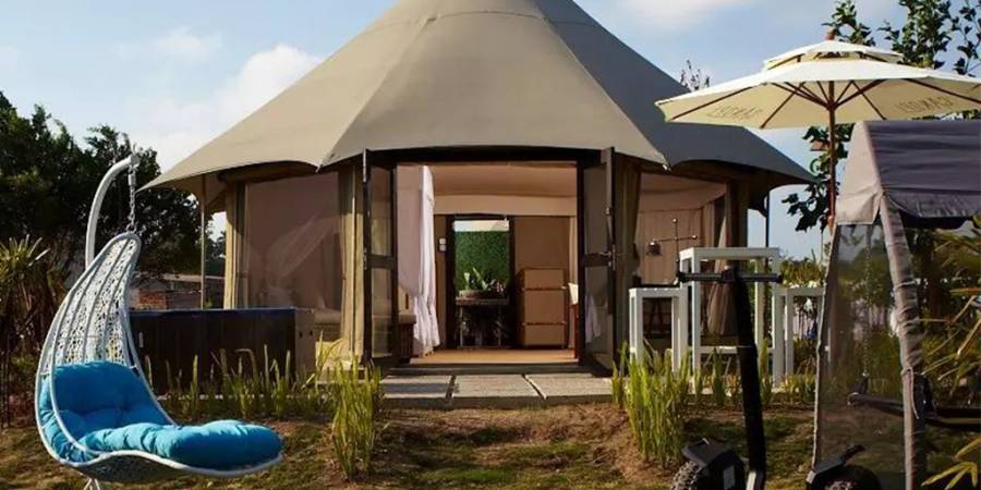 帐篷式独特的设计使其充满了乐趣,每4到6个帐篷可共用一个带有亭子的开阔场地,特别适合喜欢大自然的朋友,可以亲朋好友一起聚会、烧烤、举办篝火晚会,尽情玩乐!