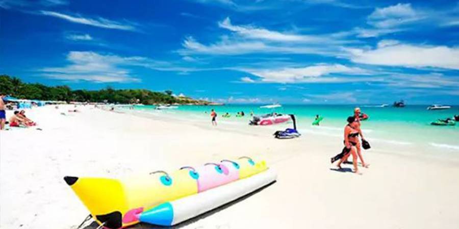 海滩上也有各种各 样的水上运动。从海滩乘大型游艇可越曼谷湾到珊瑚岛 ,此岛呈半月形,海水十分洁净。