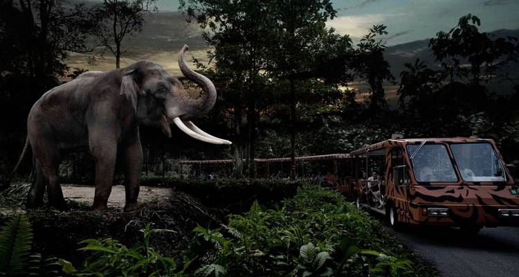 乘坐游览列车沿2条环路进行45分钟的近距离观察,穿梭遨游于世界7个不同地理区域,